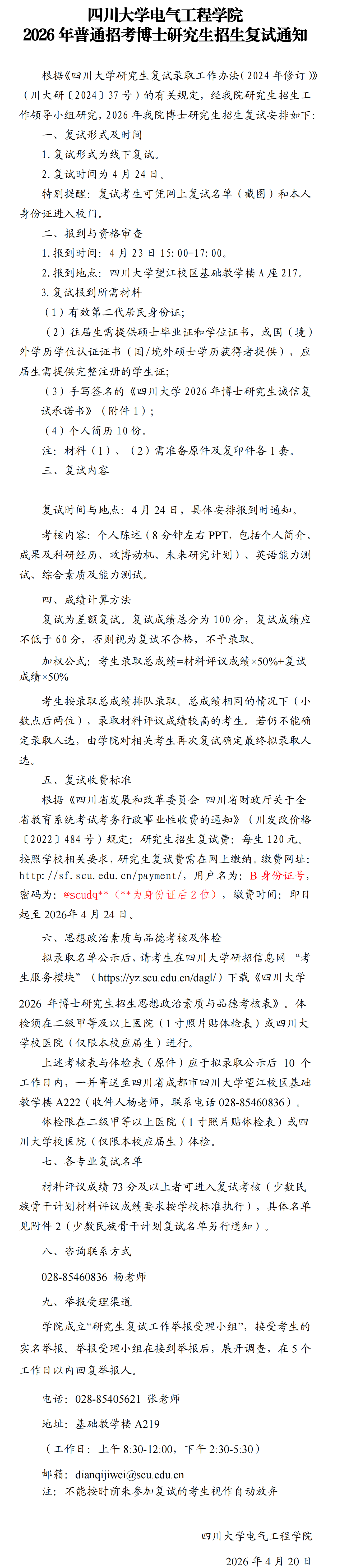 91热爆 2026年普通招考博士研究生招生复试通知